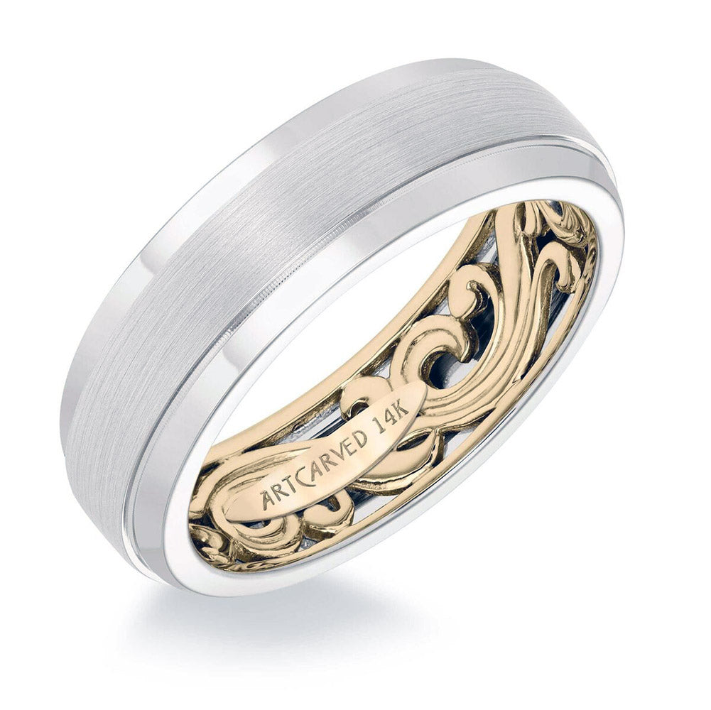 ArtCarved 14k Two Tone Gold Mens Fancy Wedding Band