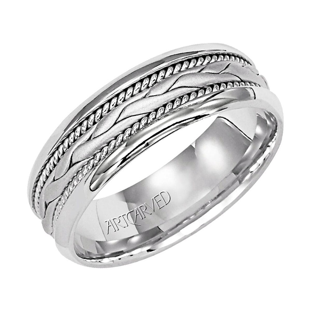 ArtCarved 18k White Gold Carved Milgrain Wedding Band