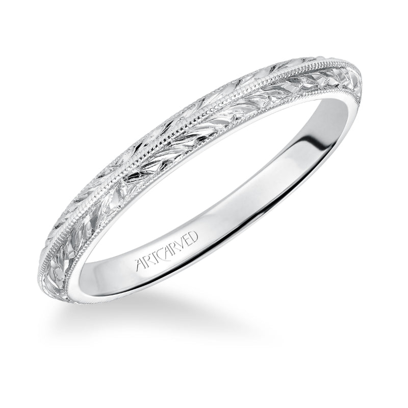Artcarved Bridal Band No Stones Vintage Engraved Solitaire Wedding Band Cherry 14K White Gold - 31-V517W-L.00