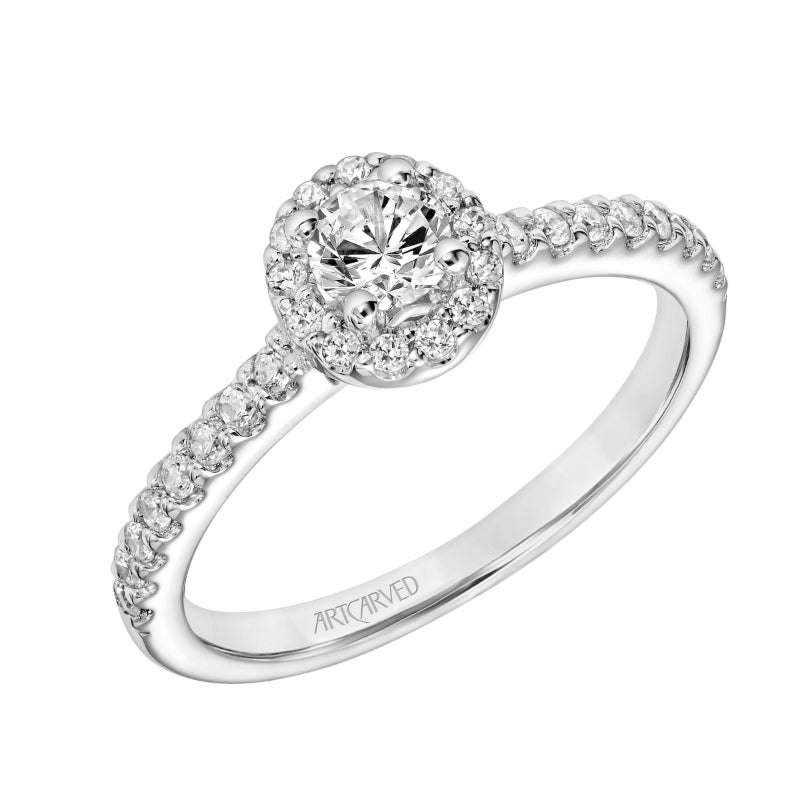 Artcarved Bridal Mounted Mined Live Center Classic One Love Halo Engagement Ring Layla 18K White Gold - 31-V324ARW-E.02