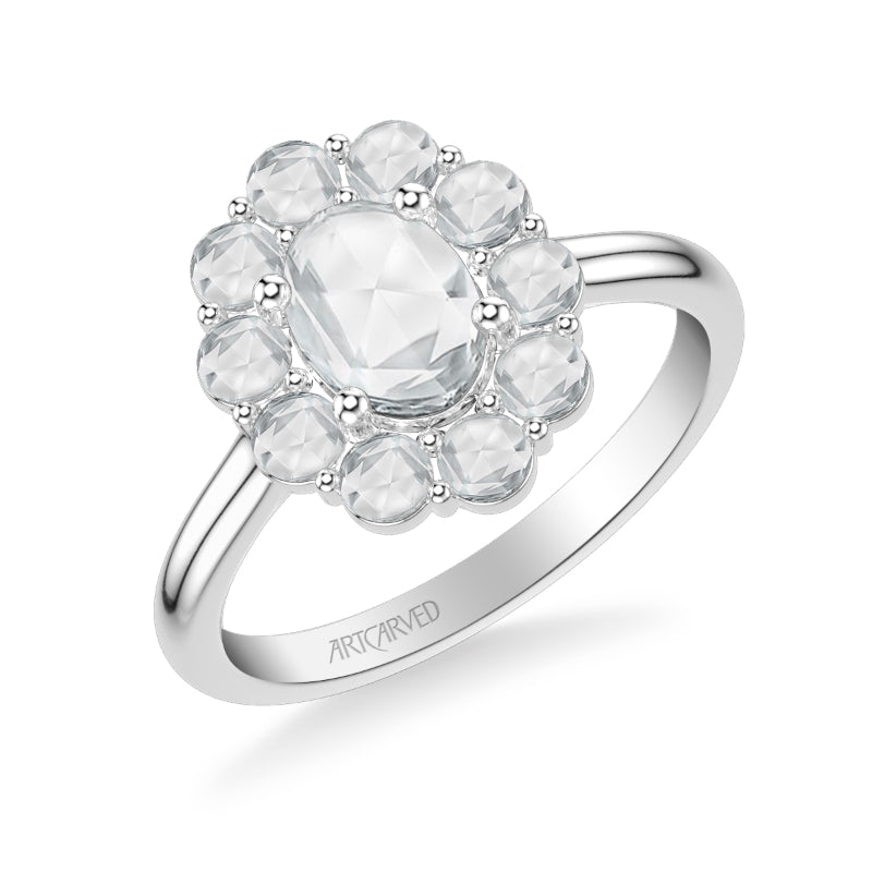 Classic Oval Halo Rose Cut Diamond Engagement Ring