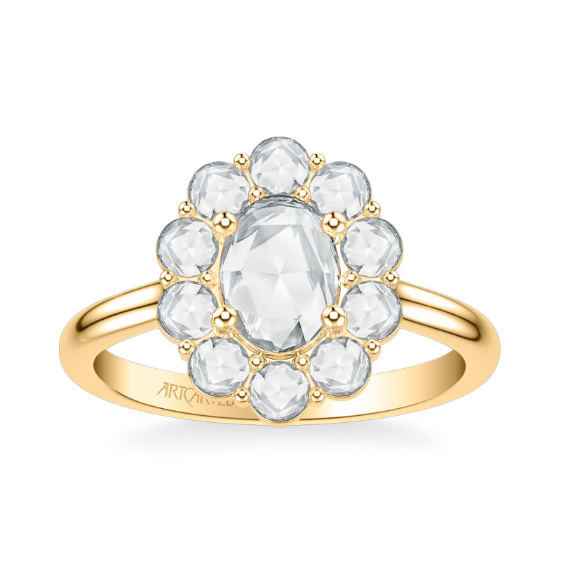 Classic Oval Halo Rose Cut Diamond Engagement Ring