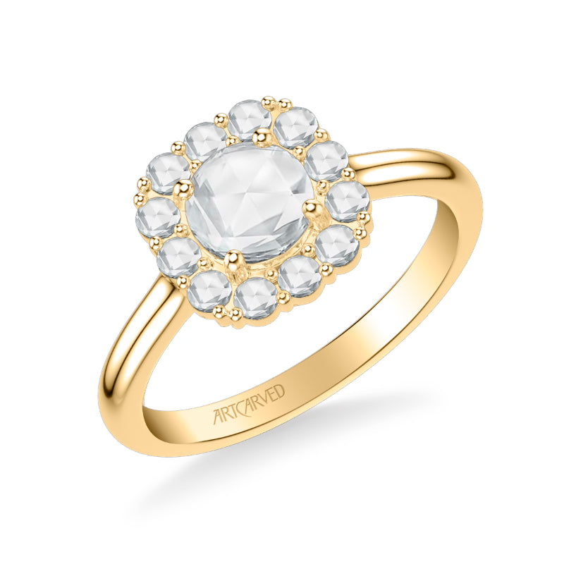 Artcarved Bridal Mounted Mined Live Center Classic Rose Goldcut Halo Engagement Ring Irma 18K Yellow Gold - 31-V967CRY-E.01