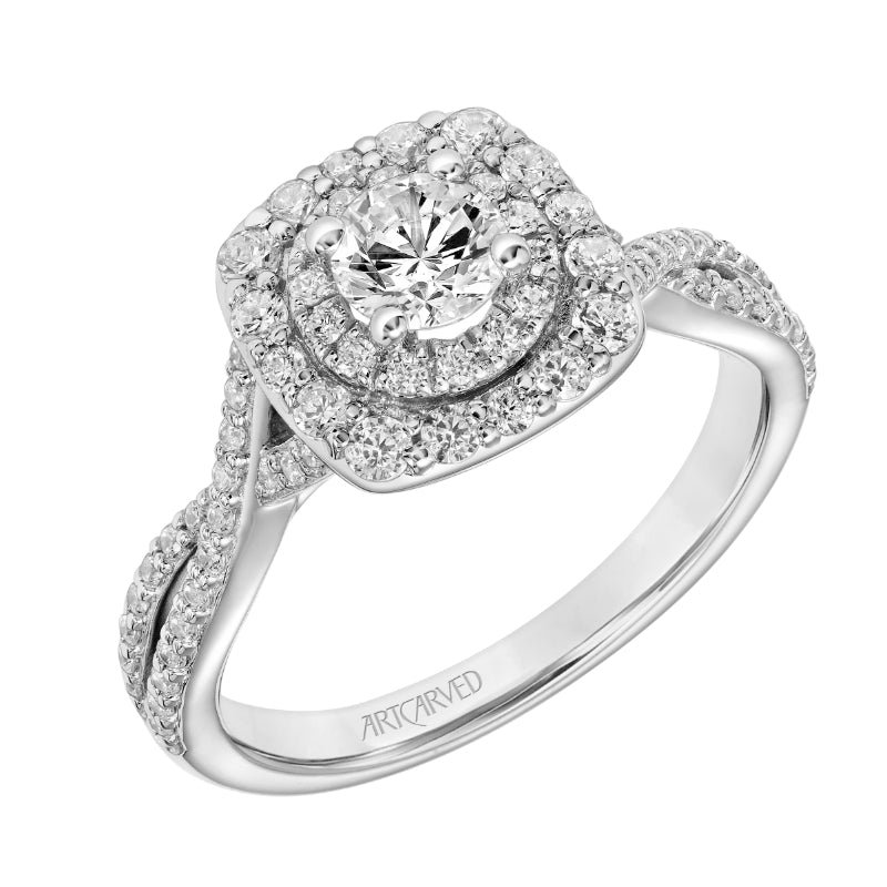 Artcarved Bridal Mounted Mined Live Center Contemporary One Love Halo Engagement Ring Kendra 14K White Gold - 31-V880BRW-E.00