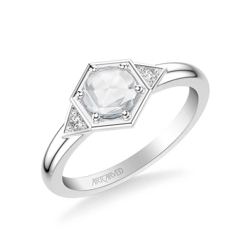 Artcarved Bridal Mounted Mined Live Center Contemporary Rose Goldcut Engagement Ring Truddy 14K White Gold - 31-V969CRW-E.00