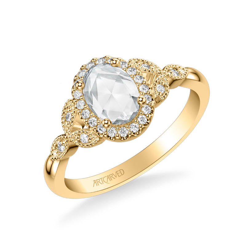 Artcarved Bridal Mounted Mined Live Center Contemporary Rose Goldcut Halo Engagement Ring 18K Yellow Gold - 31-V976CVY-E.01