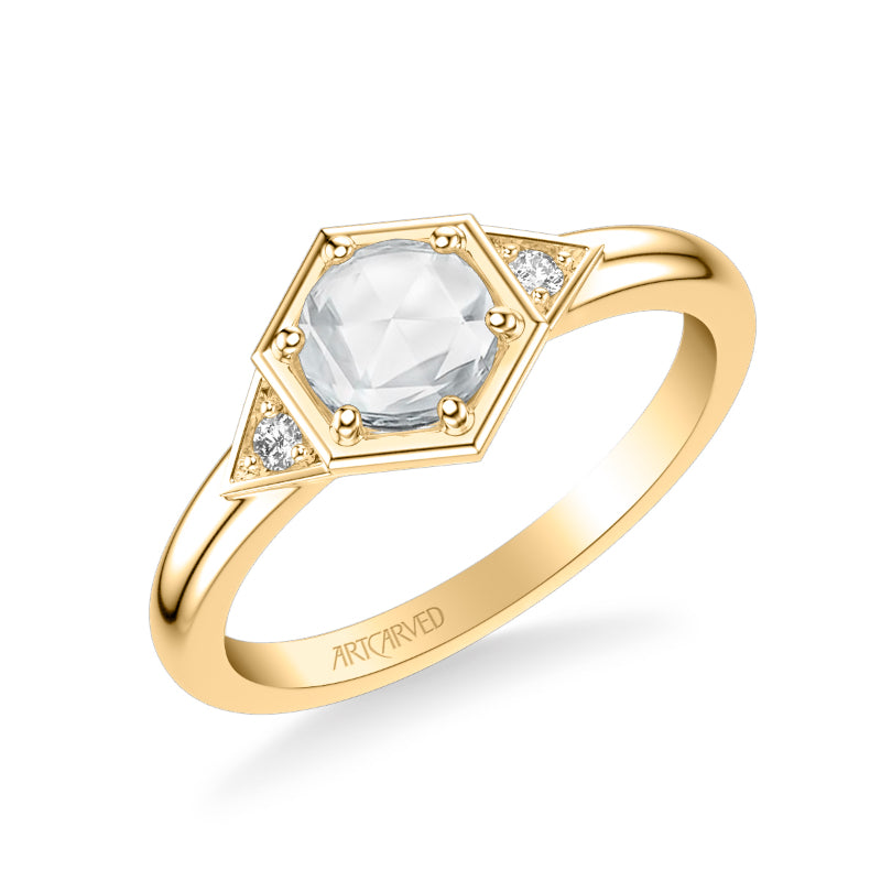 Contemporary Hexagon Bezel Round Center Rose Cut Diamond Engagement Ring