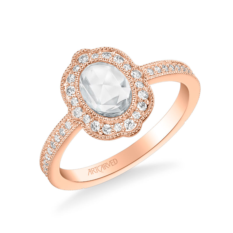 Artcarved Bridal Mounted Mined Live Center Vintage Halo Engagement Ring Sophia 14K Rose Gold - 31-V1000CVR-E.00