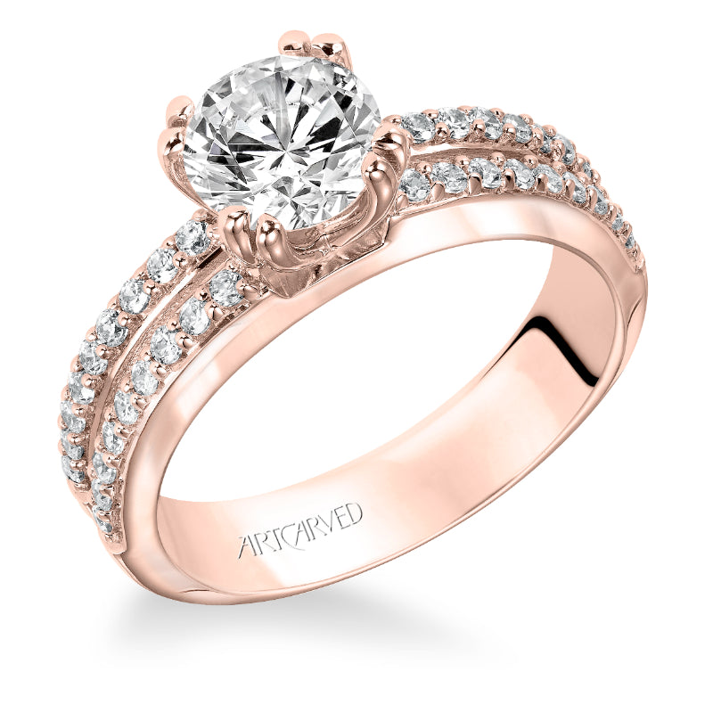 Artcarved Bridal Mounted with CZ Center Classic Engagement Ring Jade 14K White Gold Primary & 14K Rose Gold - 31-V218ERR-E.01