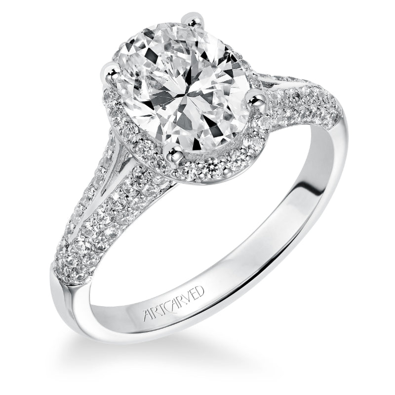 Artcarved Bridal Mounted with CZ Center Classic Halo Engagement Ring Ariel 14K White Gold - 31-V327GVW-E.00