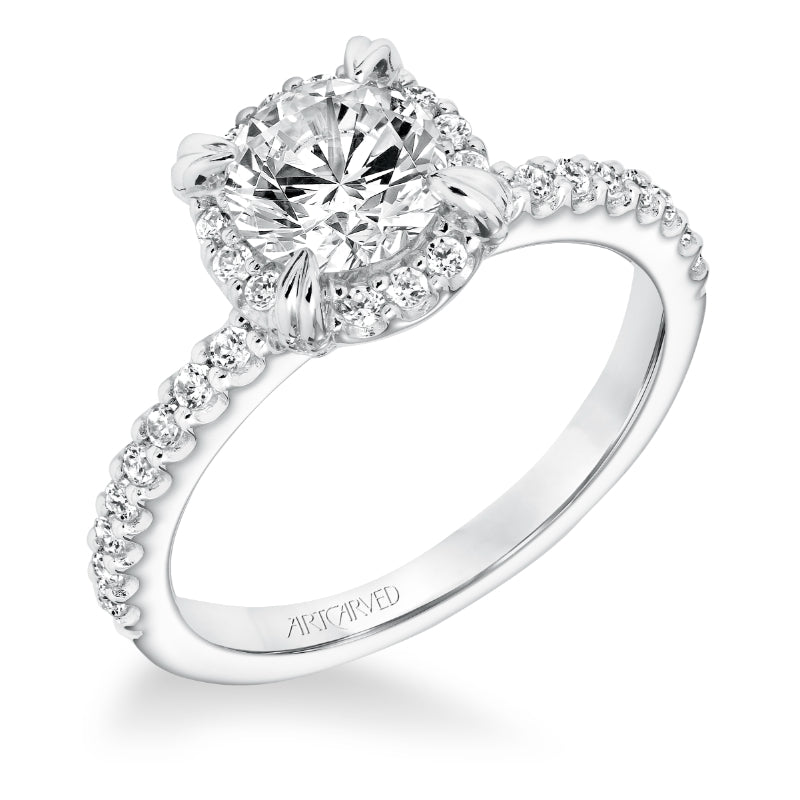Artcarved Bridal Mounted with CZ Center Classic Halo Engagement Ring Emme 14K White Gold - 31-V645ERW-E.00