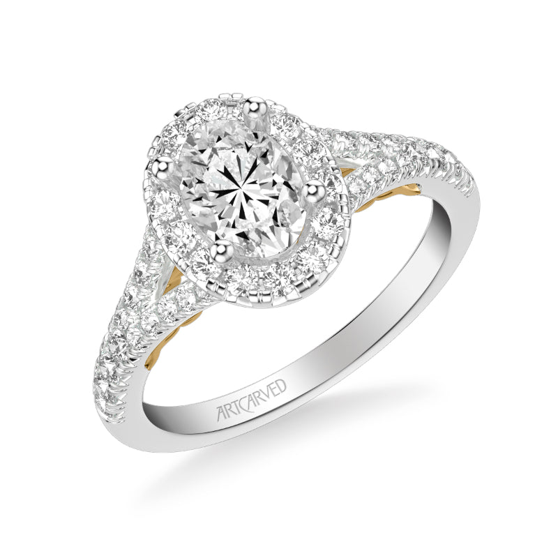 Artcarved Bridal Mounted with CZ Center Classic Lyric Halo Engagement Ring Augusta 14K White Gold Primary & 14K Yellow Gold - 31-V1003EVWY-E.00