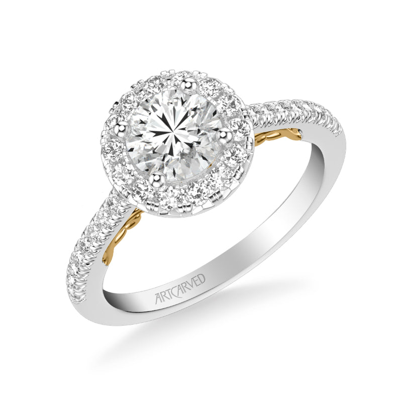 Artcarved Bridal Mounted with CZ Center Classic Lyric Halo Engagement Ring Hazel 14K White Gold Primary & 14K Yellow Gold - 31-V1007ERWY-E.00