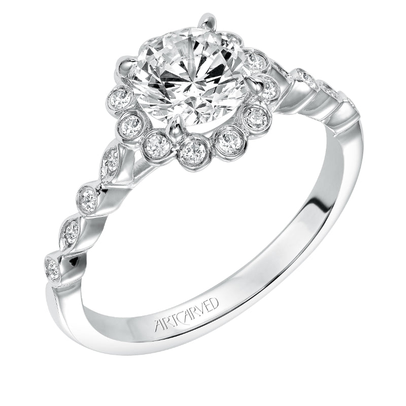 Artcarved Bridal Mounted with CZ Center Contemporary Bezel Halo Engagement Ring Pia 14K White Gold - 31-V563ERW-E.00