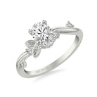 Contemporary Floral Diamond Engagement Ring With Diamond Accented Petals And Band