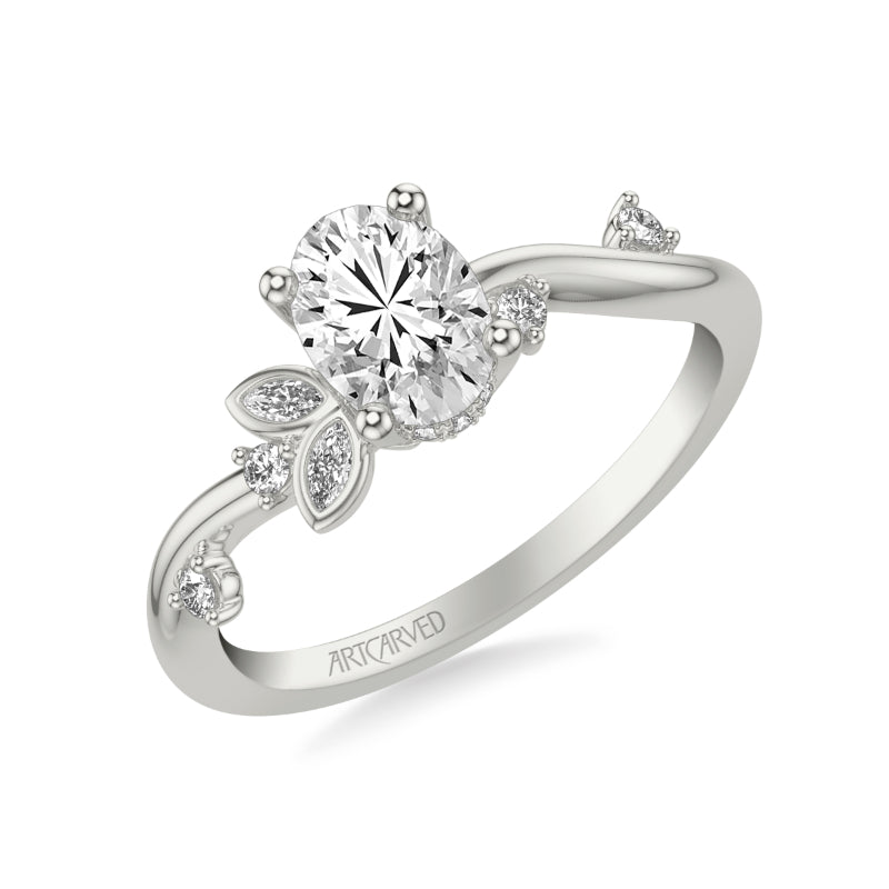 Artcarved Bridal Mounted with CZ Center Contemporary Engagement Ring 18K White Gold - 31-V1034EVW-E.02