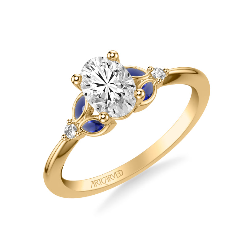 Artcarved Bridal Mounted with CZ Center Contemporary Engagement Ring 18K Yellow Gold & Blue Sapphire - 31-V1031SEVY-E.02