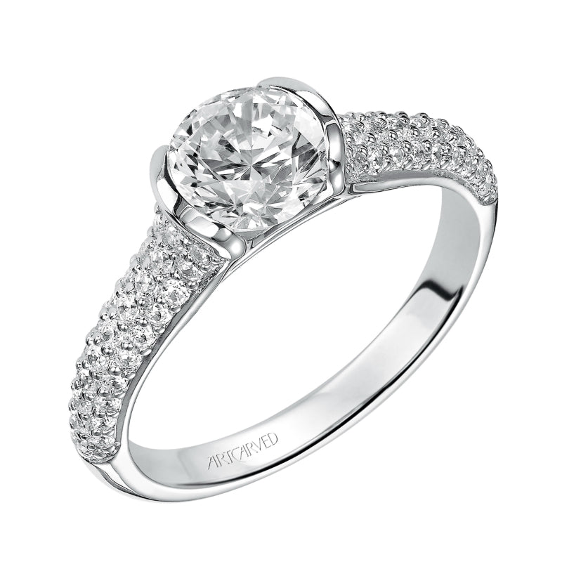 Artcarved Bridal Mounted with CZ Center Contemporary Engagement Ring Brandy 14K White Gold - 31-V384ERW-E.00