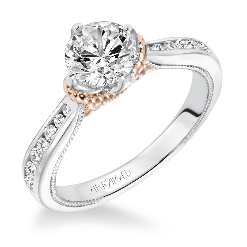 Artcarved Bridal Mounted with CZ Center Contemporary Engagement Ring Posey 14K White Gold Primary & 14K Rose Gold - 31-V586ERR-E.00