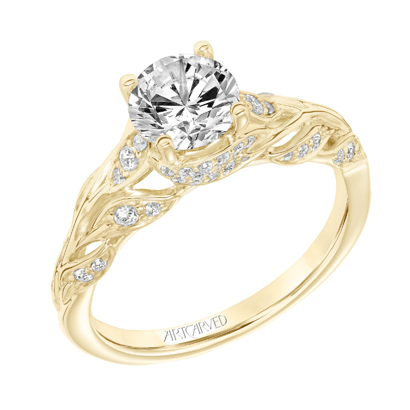 Artcarved Bridal Mounted with CZ Center Contemporary Floral Diamond Engagement Ring Camellia 18K Yellow Gold - 31-V844ERY-E.02