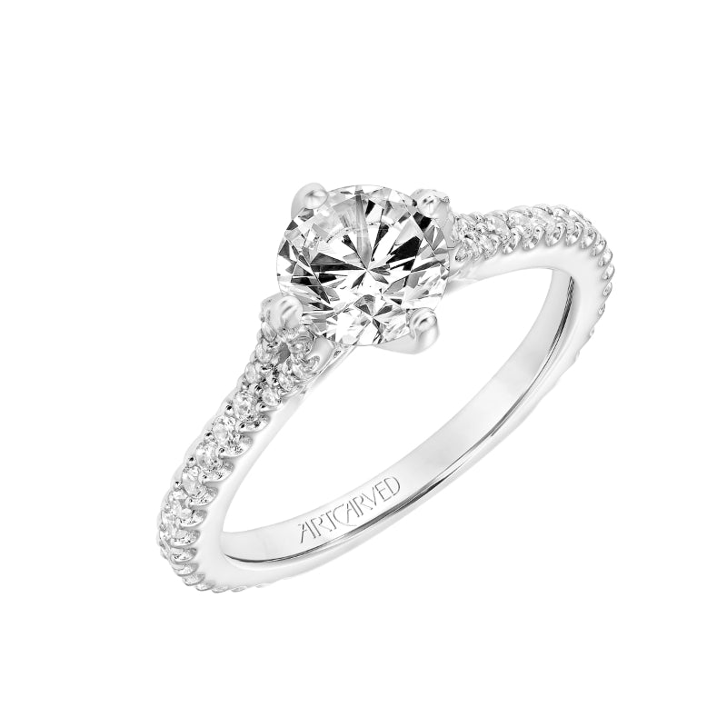 Artcarved Bridal Mounted with CZ Center Contemporary Floral Diamond Engagement Ring Delphinia 14K White Gold - 31-V778ERW-E.00