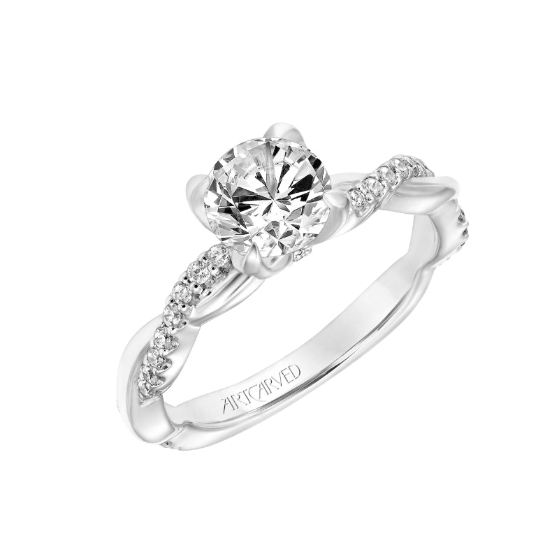 Artcarved Bridal Mounted with CZ Center Contemporary Floral Engagement Ring Daffodil 18K White Gold - 31-V782ERW-E.02