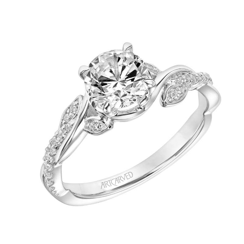 Artcarved Bridal Mounted with CZ Center Contemporary Floral Halo Engagement Ring Petaluma 14K White Gold - 31-V901ERW-E.00