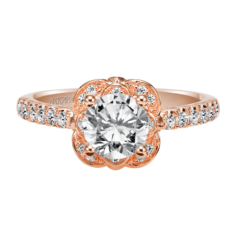 Artcarved Bridal Mounted with CZ Center Contemporary Floral Halo Engagement Ring Skyler 14K Rose Gold - 31-V342ERR-E.00