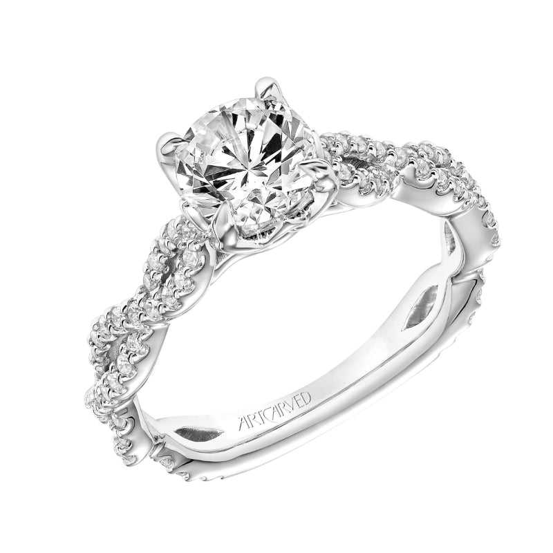 Artcarved Bridal Mounted with CZ Center Contemporary Floral Twist Engagement Ring Sweetpea 18K White Gold - 31-V841ERW-E.02