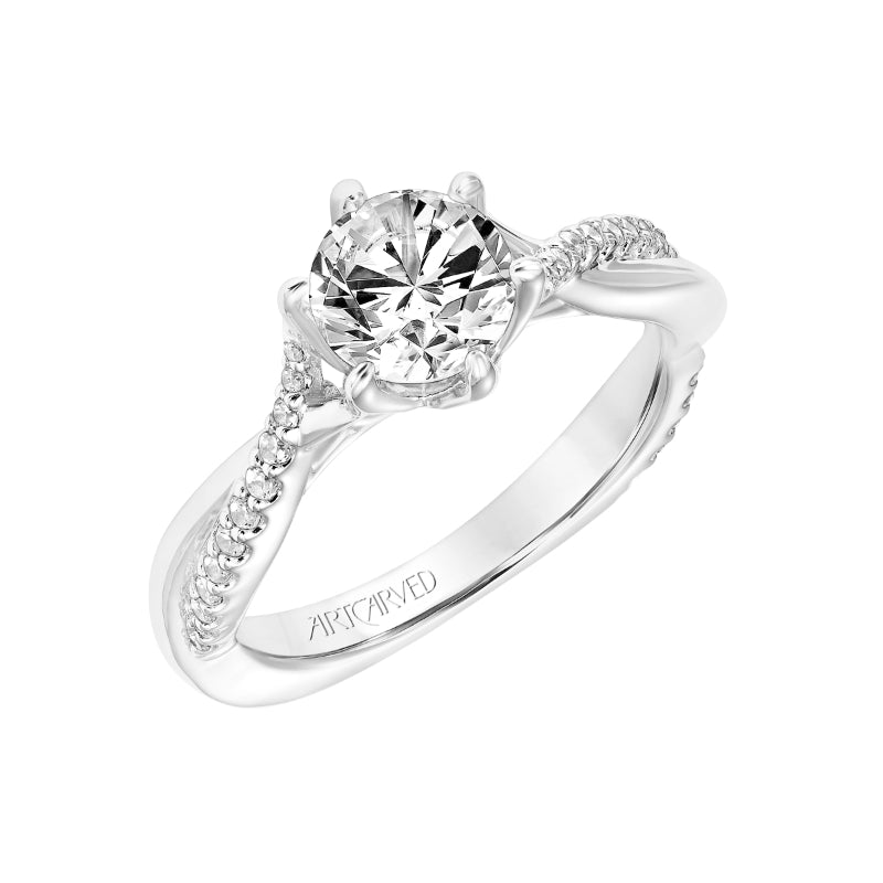 Artcarved Bridal Mounted with CZ Center Contemporary Floral Twist Engagement Ring Tulip 14K White Gold - 31-V775ERW-E.00