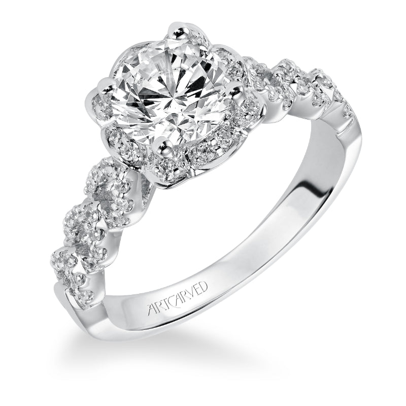 Artcarved Bridal Mounted with CZ Center Contemporary Halo Engagement Ring Noelle 14K White Gold - 31-V338FRW-E.00