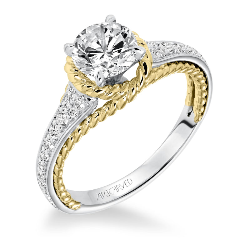 Artcarved Bridal Mounted with CZ Center Contemporary Rope Diamond Engagement Ring Seana 14K White Gold Primary & 14K Yellow Gold - 31-V587ERA-E.00