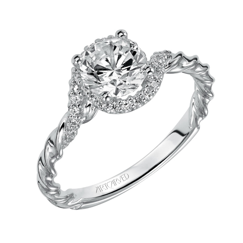 Artcarved Bridal Mounted with CZ Center Contemporary Rope Halo Engagement Ring Jolie 14K White Gold - 31-V461ERW-E.00