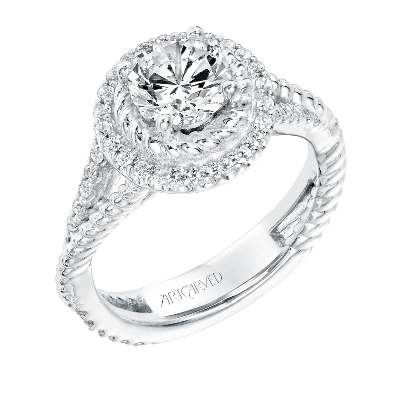 Artcarved Bridal Mounted with CZ Center Contemporary Rope Halo Engagement Ring Skyla 14K White Gold - 31-V737ERW-E.00