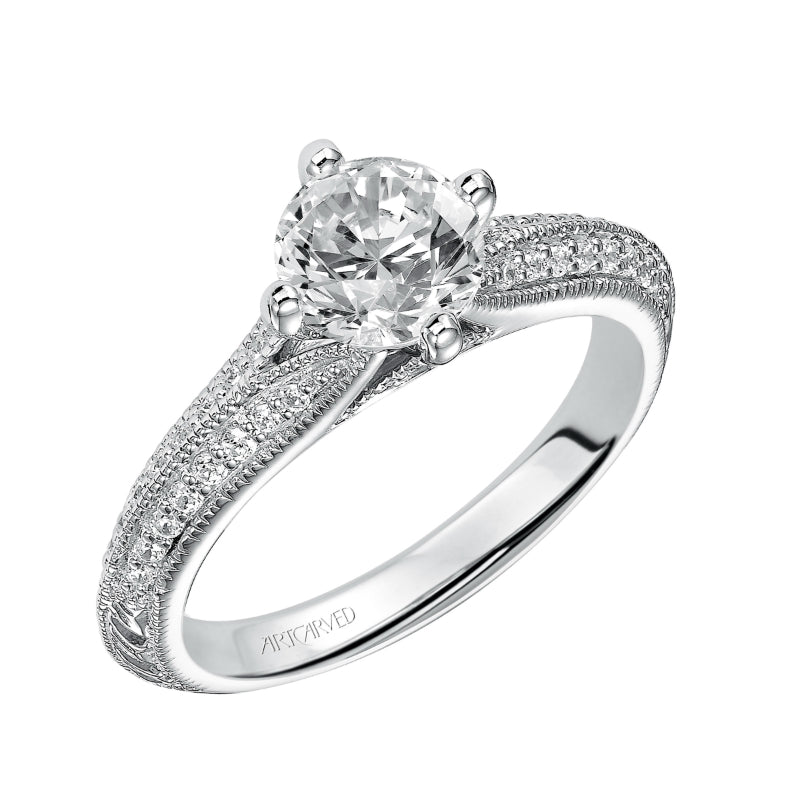 Artcarved Bridal Mounted with CZ Center Vintage Engagement Ring Jeanette 14K White Gold - 31-V434ERW-E.00