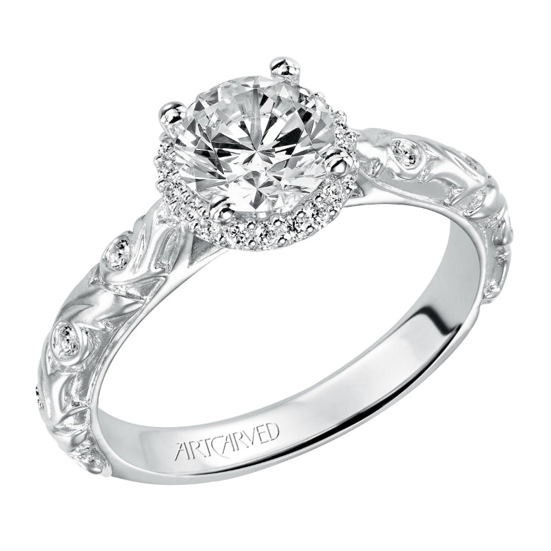 Artcarved Bridal Mounted with CZ Center Vintage Engraved Halo Engagement Ring Catrina 14K White Gold - 31-V487ERW-E.00