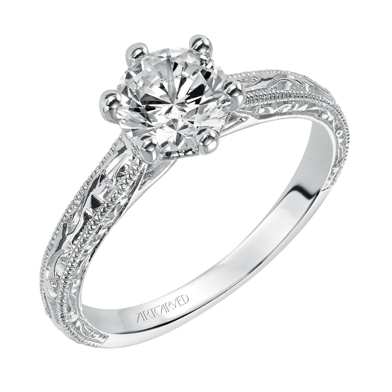 Artcarved Bridal Mounted with CZ Center Vintage Engraved Solitaire Engagement Ring Gretchen 14K White Gold - 31-V431ERW-E.00
