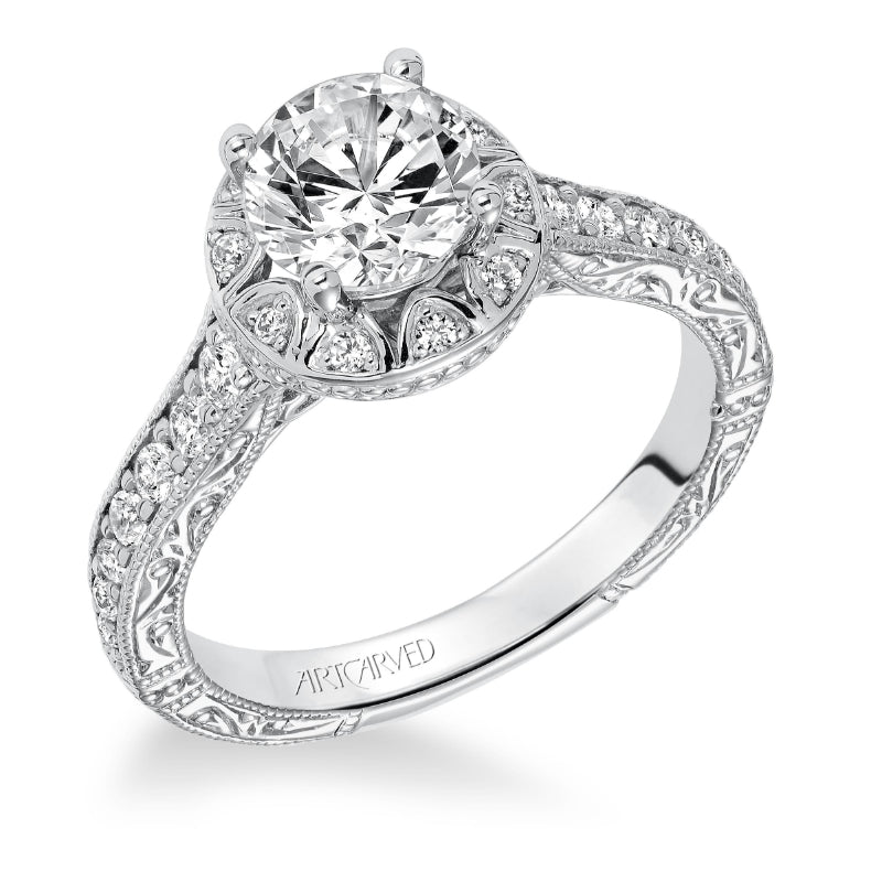 Artcarved Bridal Mounted with CZ Center Vintage Halo Engagement Ring Winslet 14K White Gold - 31-V637ERW-E.00