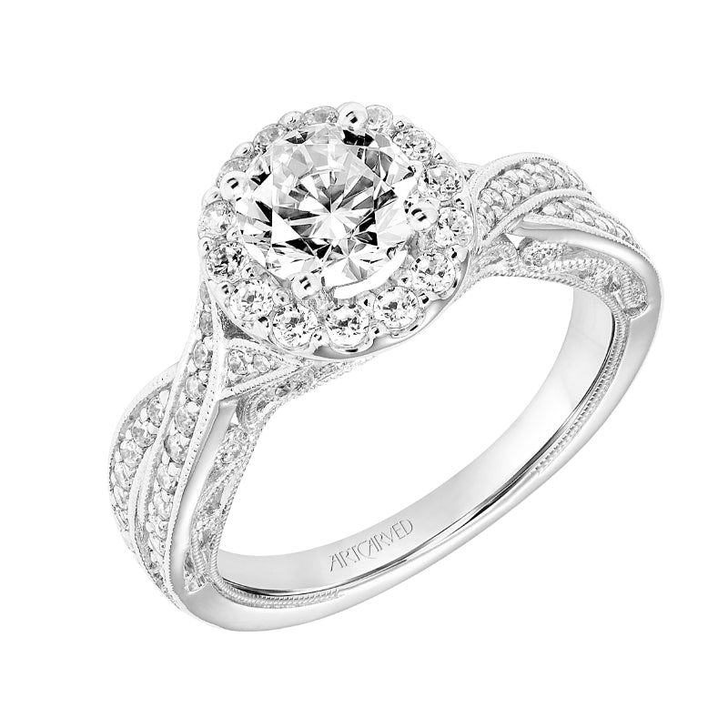 Artcarved Bridal Mounted with CZ Center Vintage Heritage Engagement Ring Lucinda 14K White Gold - 31-V765ERW-E.00