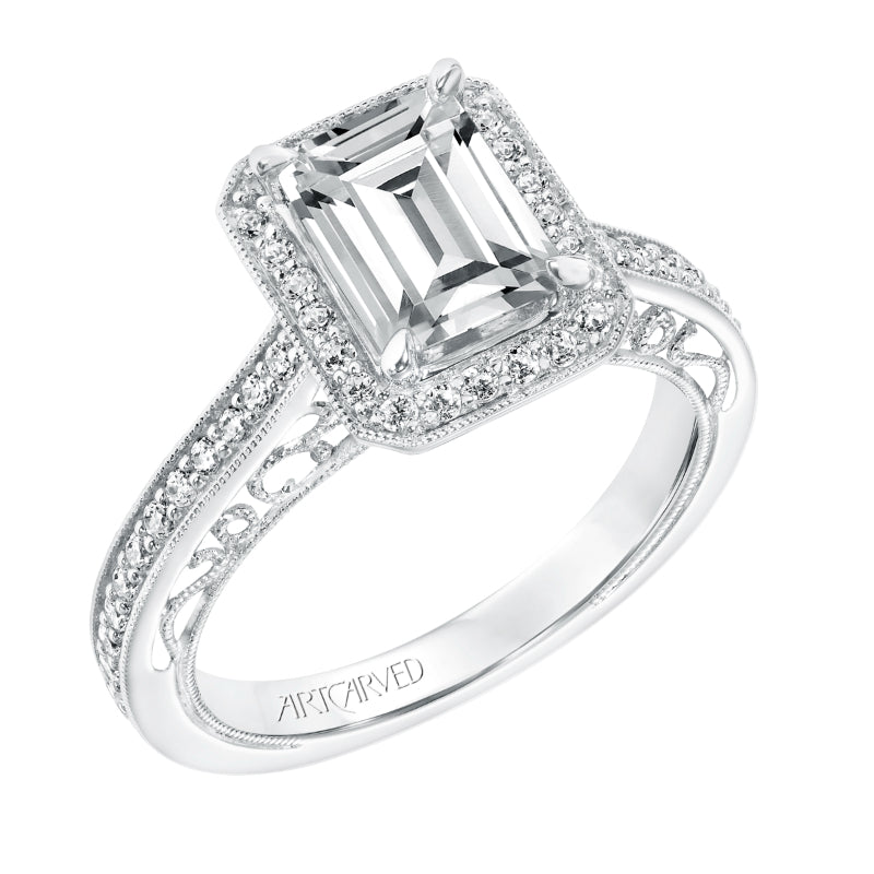 Artcarved Bridal Mounted with CZ Center Vintage Heritage Engagement Ring Velma 14K White Gold - 31-V728GEW-E.00