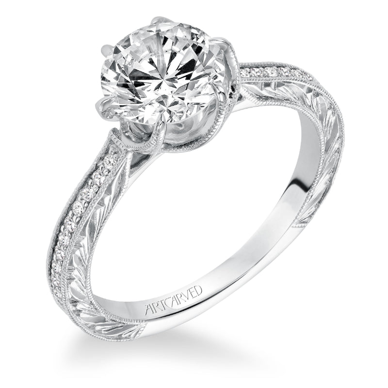 Artcarved Bridal Mounted with CZ Center Vintage Vintage Engagement Ring Veva 14K White Gold - 31-V552GRW-E.00