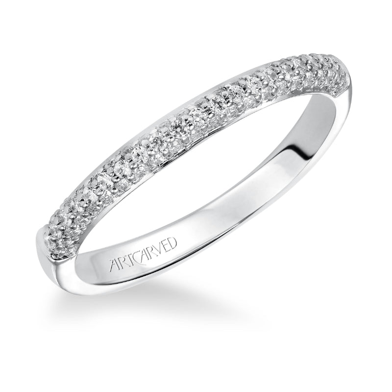 Artcarved Bridal Mounted with Side Stones Classic Halo Diamond Wedding Band Ariel 14K White Gold - 31-V327W-L.00