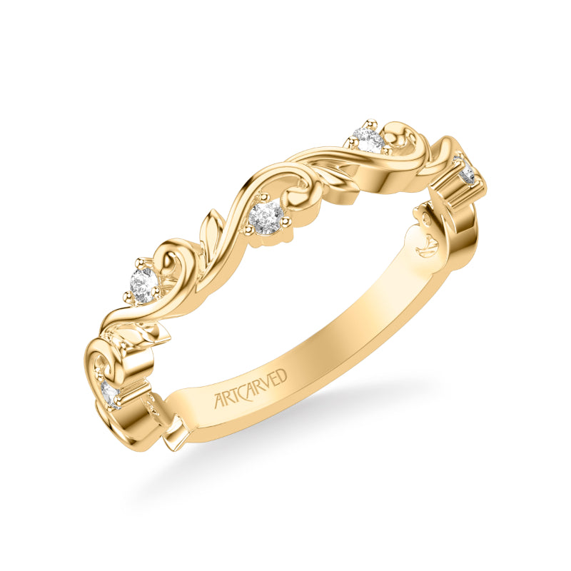 Artcarved Bridal Mounted with Side Stones Classic Lyric Diamond Anniversary Ring 14K Yellow Gold - 33-V9408Y-L.00