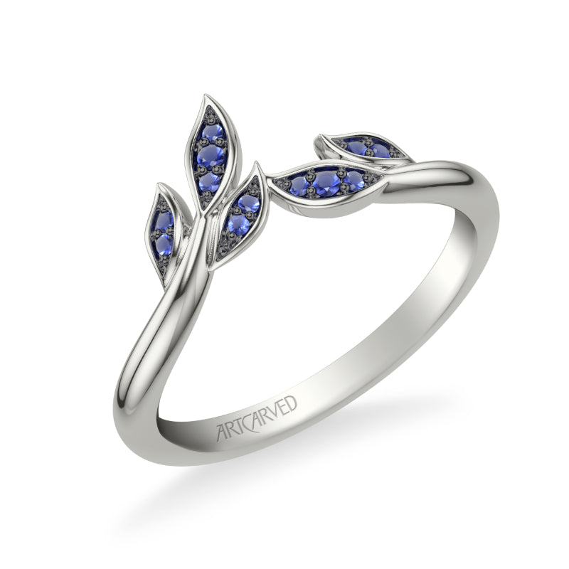 Artcarved Bridal Mounted with Side Stones Contemporary Anniversary Ring 14K White Gold & Blue Sapphire - 33-V9329SW-L.00