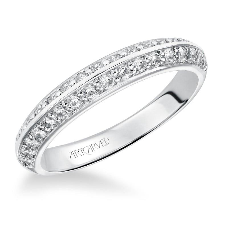 Artcarved Bridal Mounted with Side Stones Contemporary Diamond Wedding Band Lexi 14K White Gold - 31-V343W-L.00