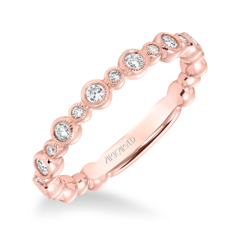 Artcarved Bridal Mounted with Side Stones Contemporary Fashion Diamond Anniversary Band 14K Rose Gold - 33-V9157R-L.00