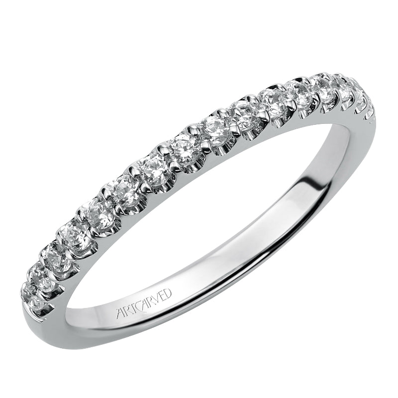 Artcarved Bridal Mounted with Side Stones Contemporary Floral Halo Engagement Ring Skyler 14K White Gold - 31-V342W-L.00