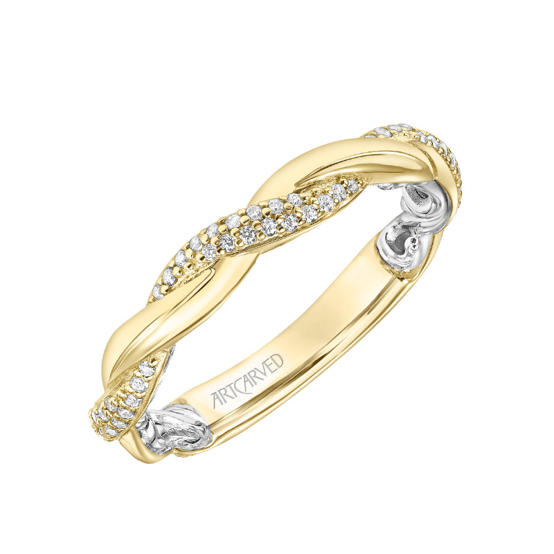 Artcarved Bridal Mounted with Side Stones Contemporary Lyric Diamond Wedding Band Starla 14K Yellow Gold Primary & 14K White Gold - 31-V920YW-L.00