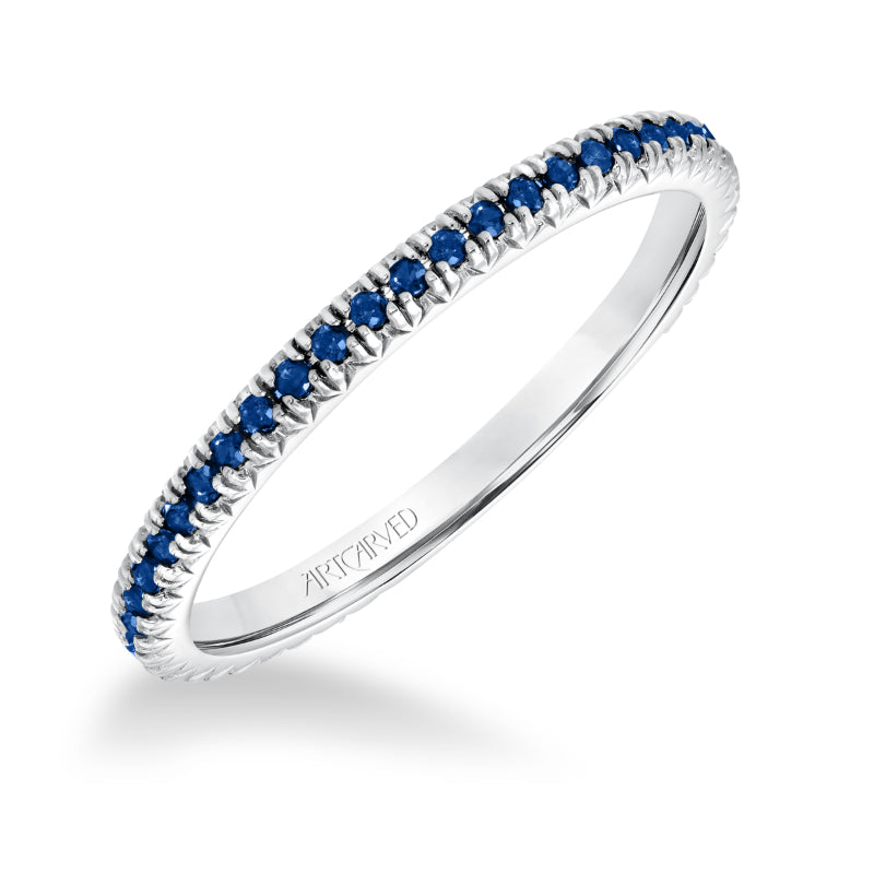 Artcarved Bridal Mounted with Side Stones Contemporary Stackable Eternity Anniversary Band 14K White Gold & Blue Sapphire - 33-V88K4W65S-L.00
