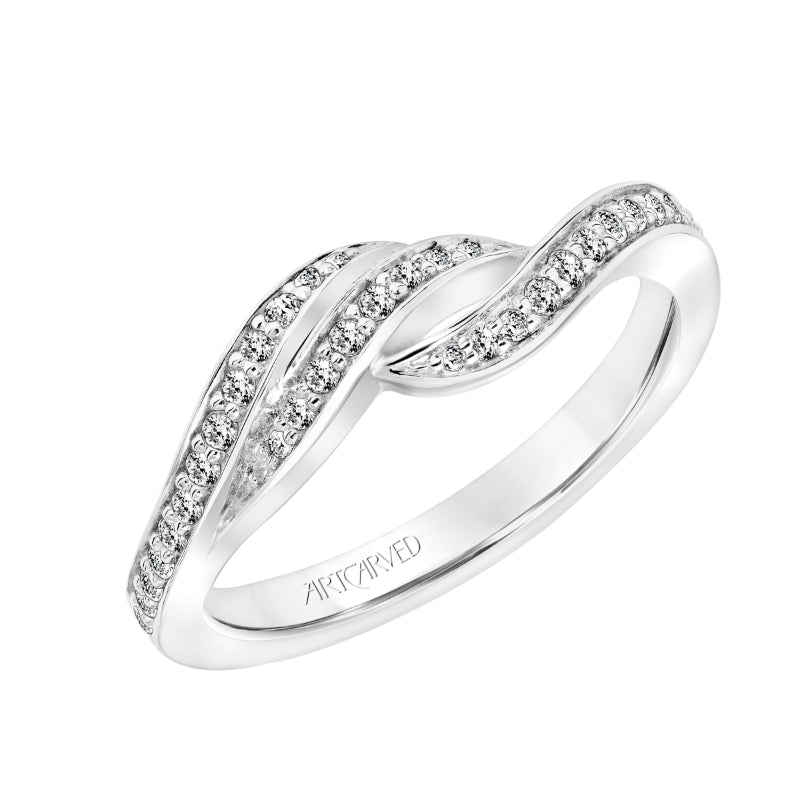 Artcarved Bridal Mounted with Side Stones Contemporary Stackable Fashion Anniversary Band 14K White Gold - 33-V9203W-L.00